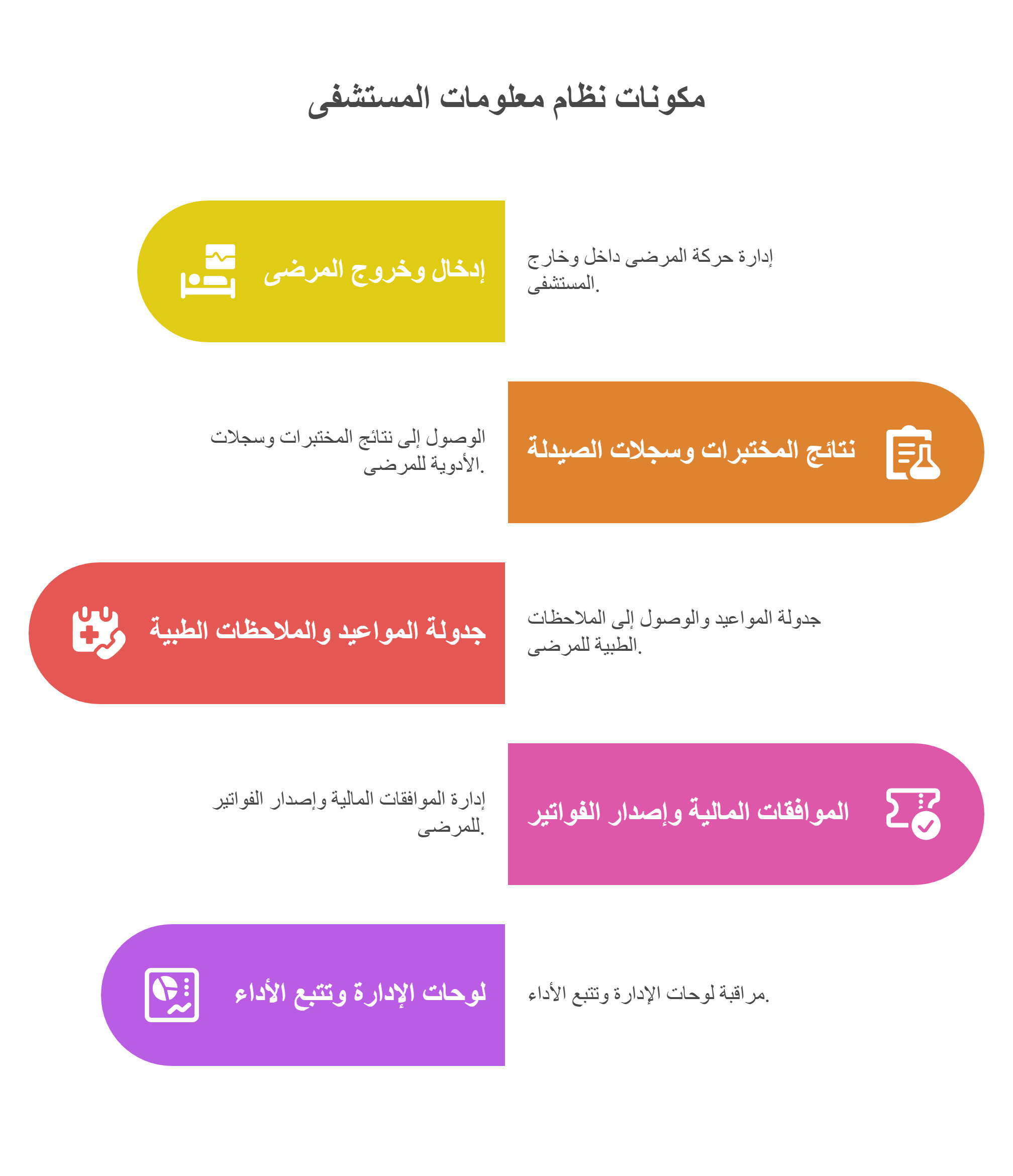 من دخول المريض حتى خروجه، يُمكّن HIS المستشفيات من تقديم تجربة رعاية موحدة، تقليل الأعباء الإدارية، والاستجابة الفورية للاحتياجات الطبية.